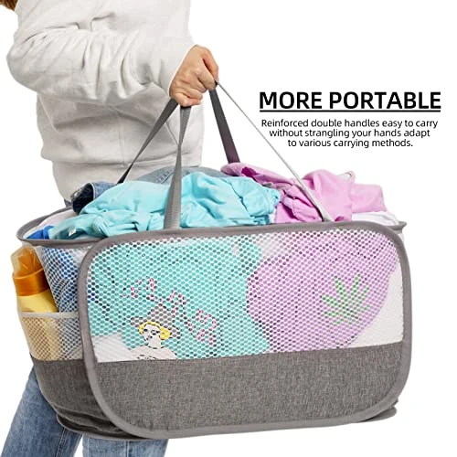 - 4. CONVENIENT SIDE POCKET: holds detergent, laundry accessories, and dryer sheets to meet your need to sort and carry more items.