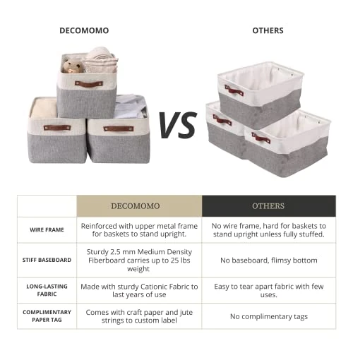 - ✅ MULTI-PURPOSE: DECOMOMO’s foldable sturdy large storage baskets. These can be used as storage baskets for shelves, closet storage bins, closet organizers and storage, baskets for organizing baby products, nursery, clothing, kid’s toys, pet products, laundry, towel, blanket, bedsheet, etc. DECOMOMO’s decorative storage basket can be used in bedroom, living room, kitchen, office, closets, and cabinets.