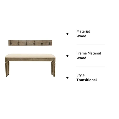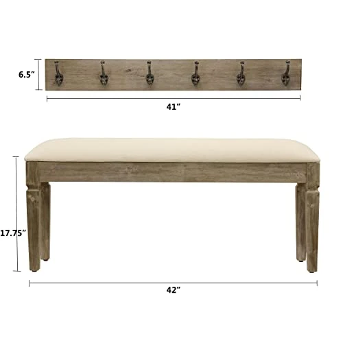 - Coat rack with 6 hooks: 41″W x 3.5″D x 6.5″H