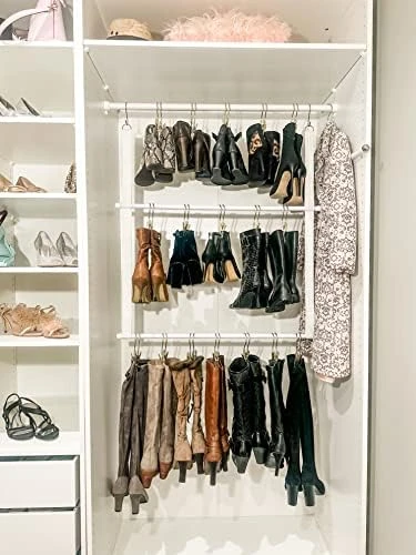 - ADJUSTABLE LEVELS allow custom heights to meet storage needs for BOOTS, PURSES, GARMENTS, BELTS, SCARVES, JEWELRY and other accessories.