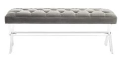 Safavieh Couture Home Tourmaline 48-inch Glam Dark Grey Velvet Tufted Acrylic Bench