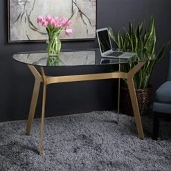 Studio Designs Home Archtech Modern Glass Desk/Dining Table, 48″, Gold/Clear Glass