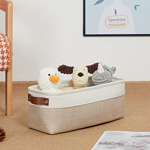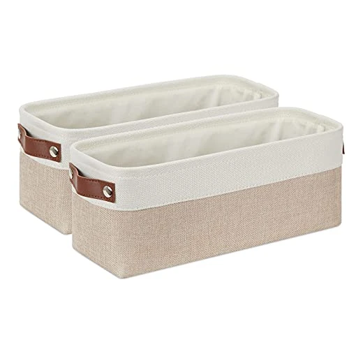 - 【Material】These toilet storage baskets are constructed of durable and attractive linen & EVA with linen interior lining. The sturdy leather handles make it easy to carry or pull off and out of shelves. DULLEMELO fabric storage bins with a sturdy metal rod frame around the top to keep the storage bins shape.