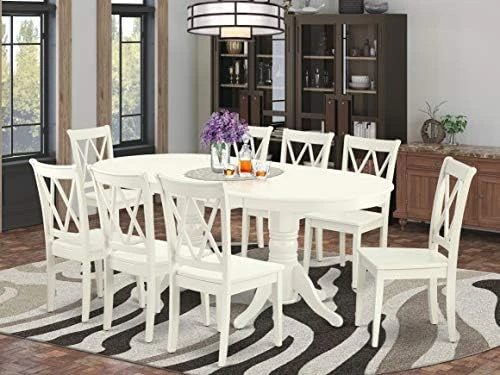 - This dining table has a Linen White color Table Top and finish. The wooden chair seats finish is Linen White and the Linen White wooden chairs legs. Our dining chairs and dining table will match with any room décor due to its traditional design.