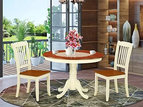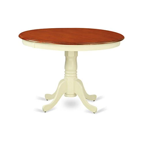 - The color of the kitchen table and chairs set is Buttermilk and Cherry finish. This kitchen table and dining chairs set color looks luxurious and retro. This dining room table set features comfortable Cherry Solid Wood seat, Buttermilk Rubber Wood legs, and open Slatted back on each mid century dining chair. It ergonomically adjusts to your body shape, promoting air circulation while also bringing a soft and cozy seating experience.