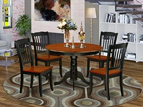 - A kitchen and dining room chairs set includes a pedestal table and 4 mid century dining chairs, our breakfast table and Solid Wood dining room chairs are comfortable in any dining area as well as in kitchen areas. This kitchen table set will comfort to modern aesthetics, which is a good choice for decorating your home perfectly and enjoying meals with family or friends in your free time.