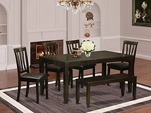 - This 7-piece dining set contains a dining table and 6 dining chairs, our dining set is comfortable in any dining area. The dinette set appears very elegant which can match any room decor. Offer a touch of beauty to your dining area with our dining set.