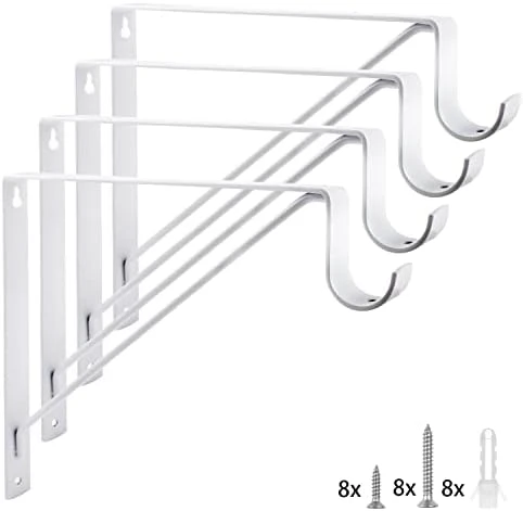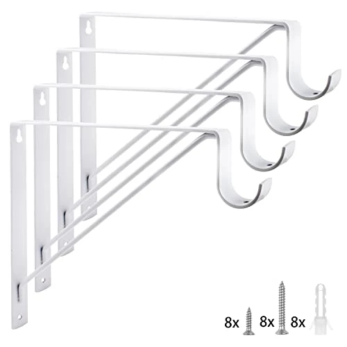 - Each order comes 4 pieces of 10 x 11 in. closet shelf brackets which able to install maximum 1.5 in. diameter rod.