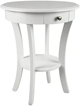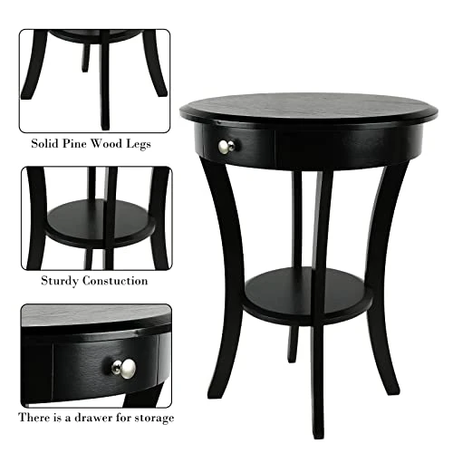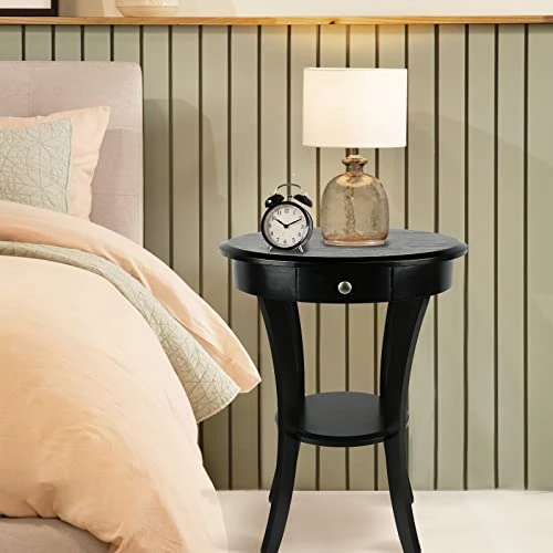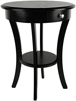 - Round Type: The side table, characterised by sleek finish with rounded shape, is always a extremely welcoming choice. Without angular corner, it’s so reassuring even your naughty child runs around. two panels is made of high quality wood with solid wood veneer; their combination is firm and built to last. Top surface supports up to 130Ibs. The small dimension is easy to move if you want to other place to working or casual.