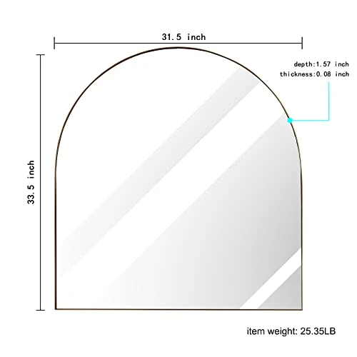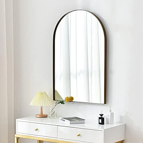 - 『PREMIUM QUALITY』: Arched thin frame looks more stylish.Lear and copper free glas in our mirror and TSCA certified MDF backplane, harmless to humans and environment.5MM thickness more sturdy and support mirror well.