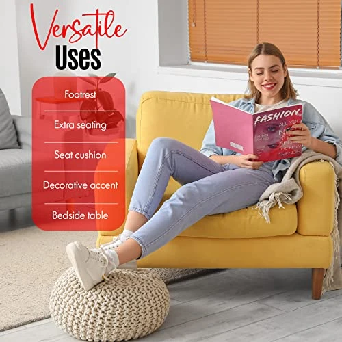 - 【Multipurpose Design】Our pouf ottoman stuffed can be used in a wide range of combinations. Add it to your bedroom, living room, office, or nursery as a seat cushion, footrest, or even a small coffee table. The pouf comes pre-filled so there’s no additional work involved.