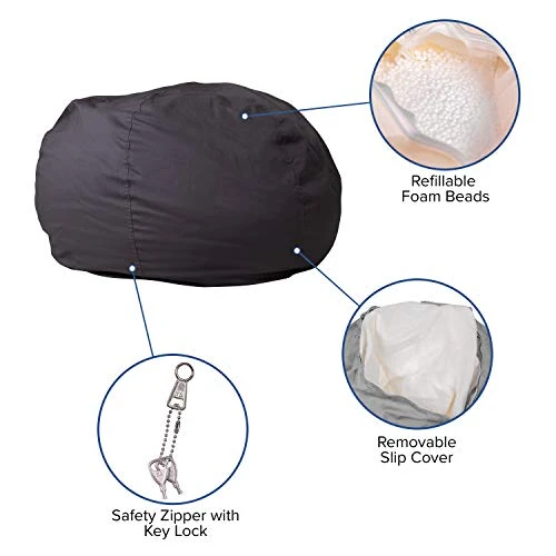 EMMA + OLIVER Oversized Solid Gray Refillable Bean Bag Chair For All Ages