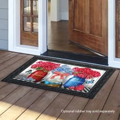 Briarwood Lane Red White And Blue Jars Floral Doormat Patriotic Rustic Indoor Outdoor 30″ X 18″
