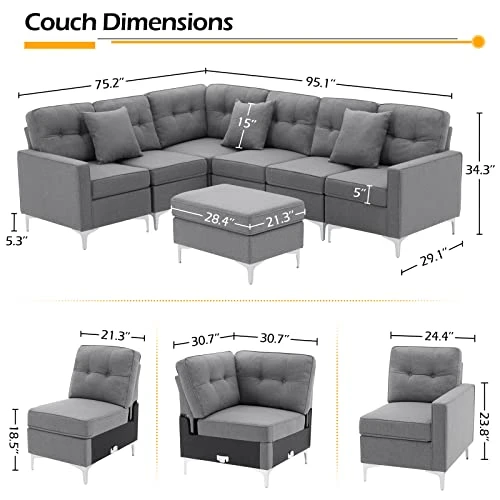 - Stylish appearance: TheConvertible Sectional Sofa Couch has a sleek, modern appearance that complements various interior decorating styles. Its contemporary look and grey fabric make it a perfect statement piece of furniture for your family’s living room.