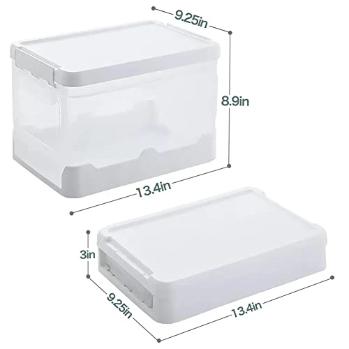 - Dimensions Assembled(each): 13.4 x 9.25 x 8.9 inches. Folded: 13.4 x 9.25 x 3 inches. Capacity: about 16 quarts. Maximum Weight Supported – 24 lbs. Material: PP Plastic.