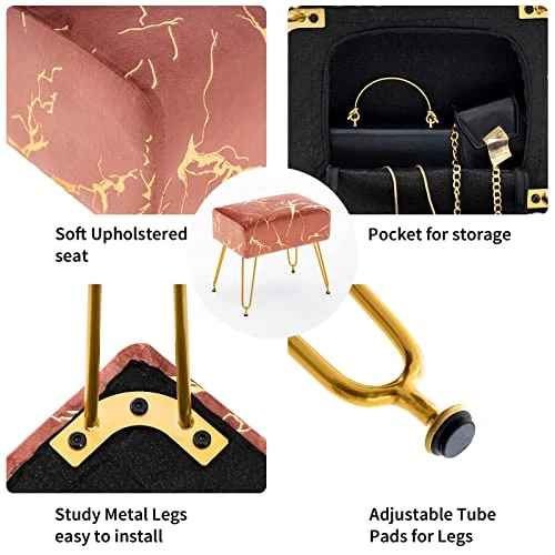 - Comfortable Sitting: Generously padded with high-density sponge, the stool for vanity is comfortable and practical as well. velvet cushioning provides a soft but supportive seat. Put your feet up on a velvet cushion and descend into pure relaxation and comfort.