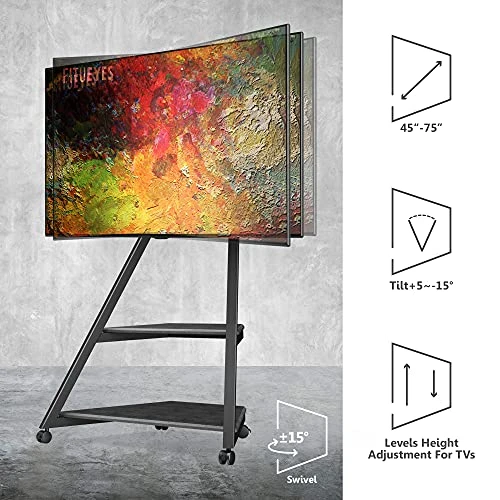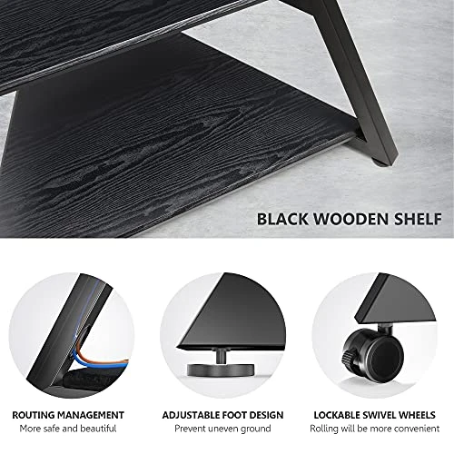 - 【Movable TV Stand】This black TV stand comes with lockable wheels, free to add wheels where the legs were supposed to be screwed in. Stand is still sturdy and wheels could be a great future option for your need.