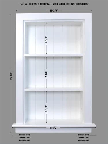 - this wood wall niche (recessed) is available in White, Dark Brown, and Unfinished, as well as in multiple sizes including 14×18, 14×24, and 14×36.