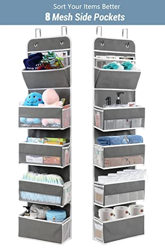 - Large Storage Capacity: over door organizer has 4 wide and deep large pockets + 1 file organizer, behind door organizer total size is 13.78 (L) x 5.12 (W) x 55.12 (H) inch, add a lot of extra storage space to your limited living space, such as diapers and wipes, clothes, hats, toys, picture books, comic books, toiletries and cosmetics
