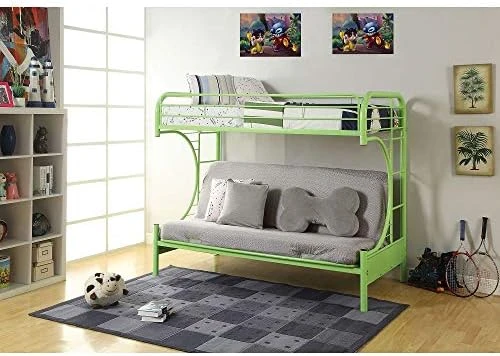 - Rugged and durable: This bunk bed frame is made of heavy metal. The bunk bed with futon is sturdy and durable and can be used for a long time. The 17 steel plate support bed frame is sturdy and durable.The upper bunk has a maximum weight of 150 pounds, and the lower bunk has a maximum weight of 300 pounds.