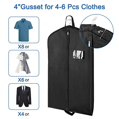 - Our garment bag for travel with 4″ gussets, easily fits 8 shirts, 6 short dresses, or 4 blazers. Perfect for travel and business trips. Breathable material makes your clothes out of stuffy. The double carry handle design can be folded travel garment bag, convenient for travel.