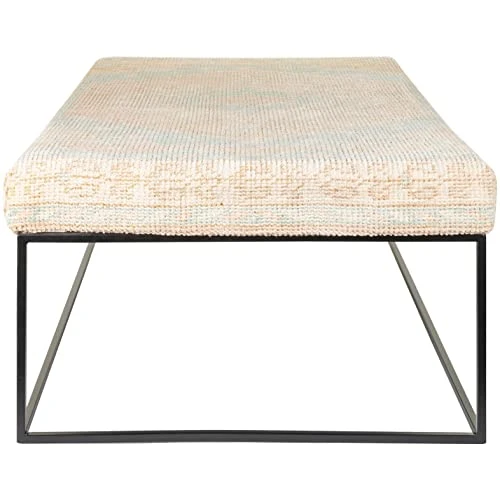 - Bench. Top: 56% Wool,20% Cotton, Fill: 90% Foam,10% Dacron, Base: Metal, Frame: Metal. Hand Knotted. Colors: Base: Black. Design/Look : Bohemian & Eclectic, Transitional. Material : Fabric, Foam. Finish : Metal Finish. Pattern : Geometric. Bench type : Standard Benches. Frame material : Metal. Print : Pattern. Assembly : Assembled. Color : Blue, Grey, Orange. Handmade