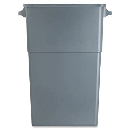 - Space-saving waste container holds 23 gallons of trash, but protrudes less than 1-feet from the wall