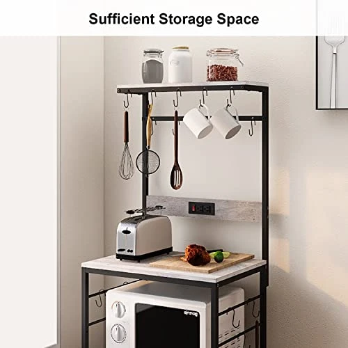 - 【Sturdy,Build to Last】This durable microwave stand with storage combines a firm iron frame with premium particleboard and metal mesh for a long use span. Whether placed in the kitchen, living room or study, it will easily stand out for function and style. Loading Capacity: 88 lb.Comes with adjustable feet pads to provide more support even on uneven floors.