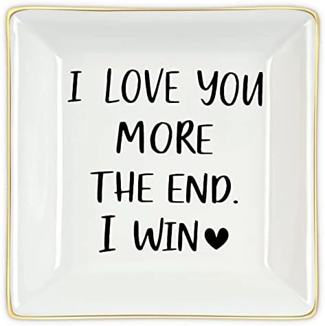 - ROMANTIC HANDMADE PATTERM: The pattern of our I love you more ring dish is I Love You More the End I Win which is handmade by professional workers. Therefore, you can receive a unique gift full of love. What a meaningful gift!