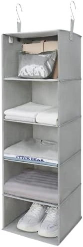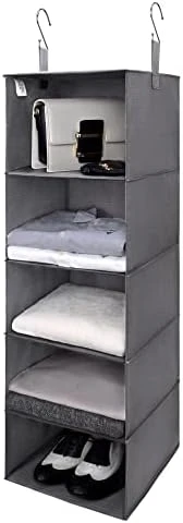 - Save More Space – 5 Shelves hanging closet organizers can maximize vertical space, save closet space and create extra storage. A must-have for home storage, suitable for wardrobes, closets, bedrooms, hangers, living rooms, dorms, etc.