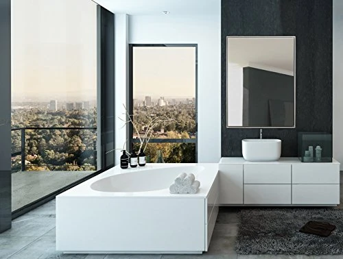 - ´Simplicity with Modern Touch- Our vanity brushed 24×36 wall mirror comes with floating glass style and clean contemporary finish. The simple edges in a deep 2″ metal frame will surely add sophistication to any room.