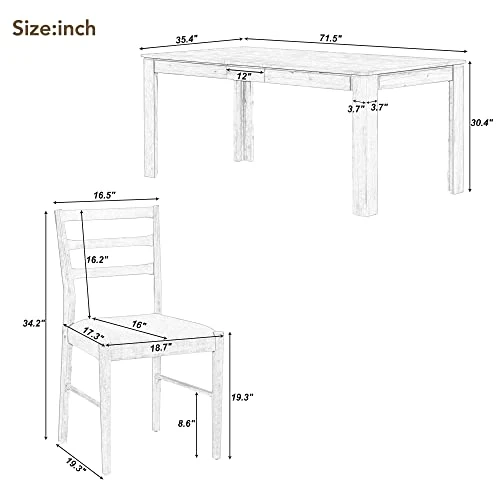 - 【Assembly & Dimensions】The Dining Table Set will be shipped in 2packages that may be delivered not at the same time.Easy set up with clear manual instructions included.Table Dimensions: 59.5-71.5“L x 35.4”W x 30.4”H, Chair Dimensions: 18.7“L x 19.3”W x 34.2”H.Tabletop weight capacity: 250 lbs; Chair weight capacity: 300 lbs/piece. Customers’ satisfaction is our top priority, please contact our friendly customer service representatives if you have any questions.