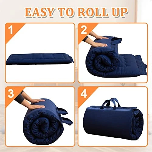 - Easy to carry&store: because this mattress is filled with memory foam, it is very easy to roll up. It also has a zipper, which is very good for storage. With a convenient carrying handle.