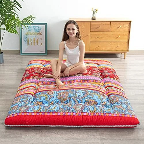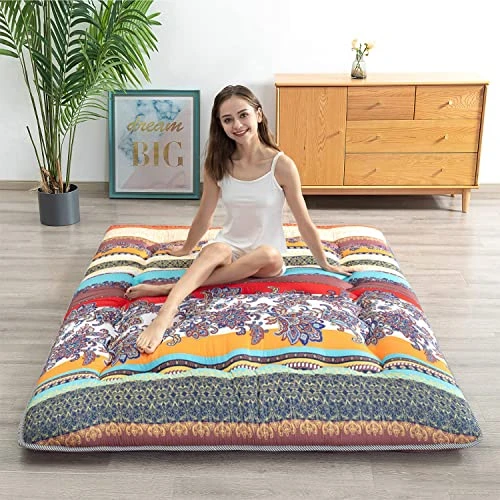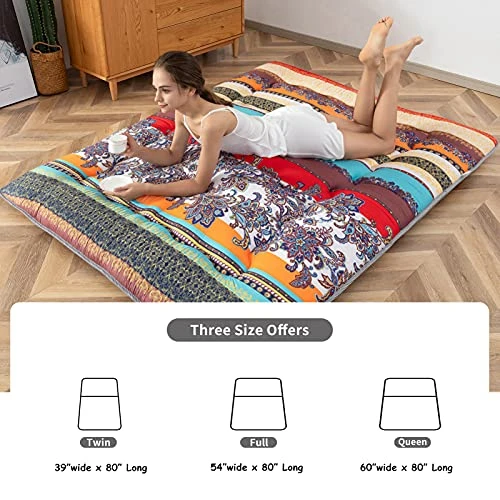 - Boho Striped Pattern: The floor mattress features bohemian striped pattern with floral, which is full of mystery and romanticism. We have upgraded the mattress structure, the exquisite seaming and quilted design make the futon mattress not deform easily and the filling more solid