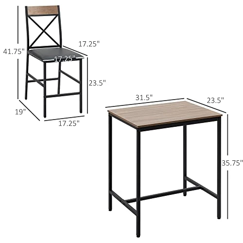 - Pub Table and Chairs Info: Overall Dimensions: 31.5″ L x 23.5″ W x 35.75″ H (table), 17.25″ W x 19″ D x 41.75″ H (stool). Weight Capacity: 132 lbs. (table), 220 lbs. (stool). Assembly required.