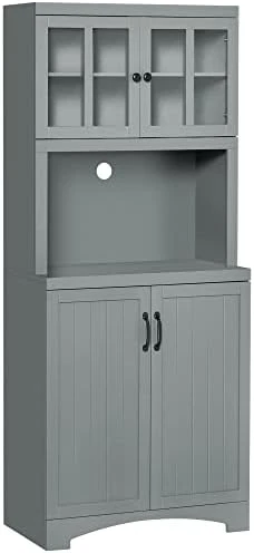 - Make a Statement: If you spend a lot of time in the kitchen, you want a beautiful piece that you enjoy looking at and matches the theme in your home. With pure color, this hutch for kitchen storage features beadboard door panels and framed glass doors,suitable for your modern to farmhouse style kitchen, dining room, and living room.