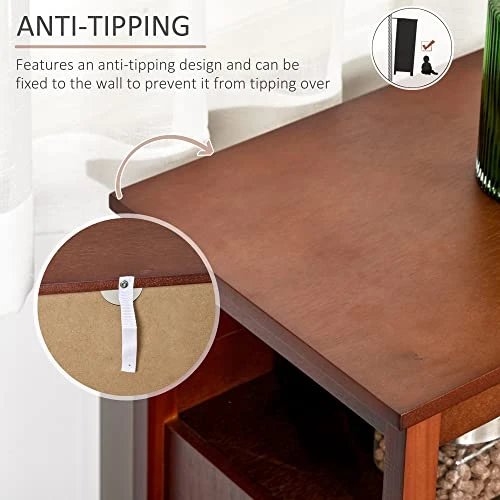 - Adjustable Shelving: This buffet cabinet features an interior adjustable shelf. You can easily adjust the height 1″ up or down to suit your needs, as the shelf can be locked in place at 3 fixed levels.