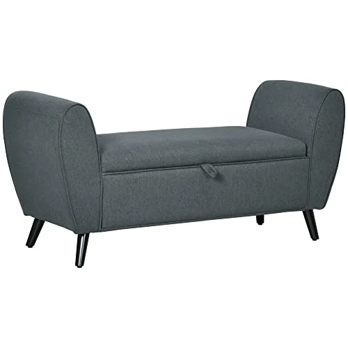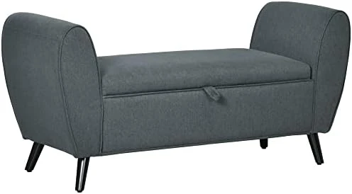 - Soft Upholstery: Softly cushioned seating and breathable linen-touch fabric deliver exceptional comfort and relaxation, while the oval rolled arms provide extra support. This storage bench is a practical yet classic choice for a shoe bench in the entryway, a storage cube under the window, or a footstool in the living room.