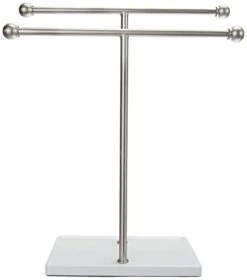 Amazon Basics Double-T Hand Towel And Accessories T-Shape Stand, Nickel/White