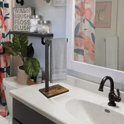 EHP EHomeProducts White Finish Towel Bathroom Rack Stand Shelf With Gold Rods