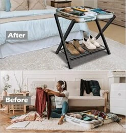 Folding Luggage Rack Suitcase Stand With Storage Shelf For Guest Room Bedroom Hotel, Black (1)