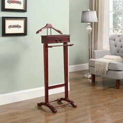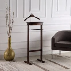 Pilaster Designs Modern Frewyn Suit & Tie Valet Stand Clothing Rack, Walnut Wood & Chrome Metal