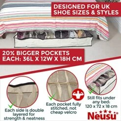 Neusu Strong Underbed Shoe Store, Clear Lid, XL 47.3″ X 28.4 X 7.1, 20 Pockets, Beige