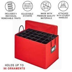 HOMZ Holiday 5831107.06 Large Heirloom 56 Ornament Storage Box, Red/Green