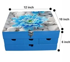 Enigmatic Woodworks Multi Drawer Wood Lotus Storage Box, Blue