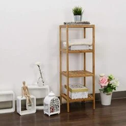 Kinsuite 3-Tier Bamboo Shelf Plant Flower Stand Storage Rack Bathroom Kitchen Living Room Holder