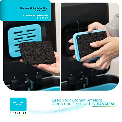 - Take Control of Your Kitchen – No more musty trash cans that stench up your kitchen. CleanAura is designed to help prevent the uninviting odors from evading the inside of your trash can with the use of an absorber filter placed inside the pod located under the lid. *NOTE: filters not included, fits up to 5″ x 4″ x 1″.