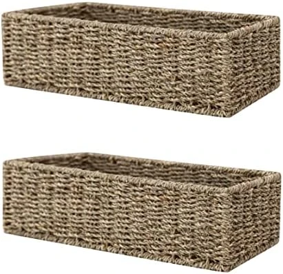 - Tidy up your bathroom, pantry, and decor with our 2-pack of rectangular seagrass baskets, each measuring 13 ¼L x 8 ¼W x 7 ¼H in.