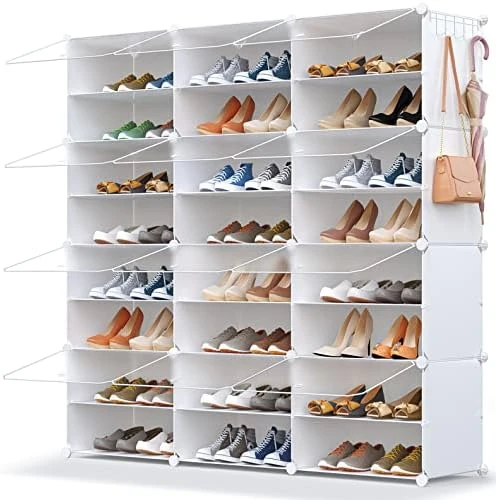 - 【Dustproof & Prevent Pets from Chewing Shoes】All shoes can be enclosed by shoe rack, which can effectively prevent dust and easy to clean. And comes with an easy-to-open transparent door that lets you find your shoes quickly and prevents pets from chewing on your shoes.The perforated door facilitates air circulation and prevents the accumulation of peculiar smells