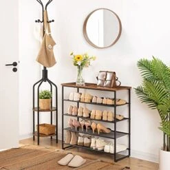 - Making Each Use Stable: Rustic brown panel, classic black steel frame, X-shaped rod on the back, adjustable floor levelers, and anti toppling device in this kitchen storage rack allow you to freely place your kitchen equipment